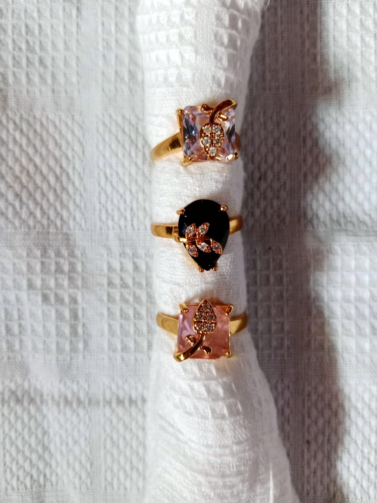 • Set of 3 rings: Black, Pink, and Clear crystal