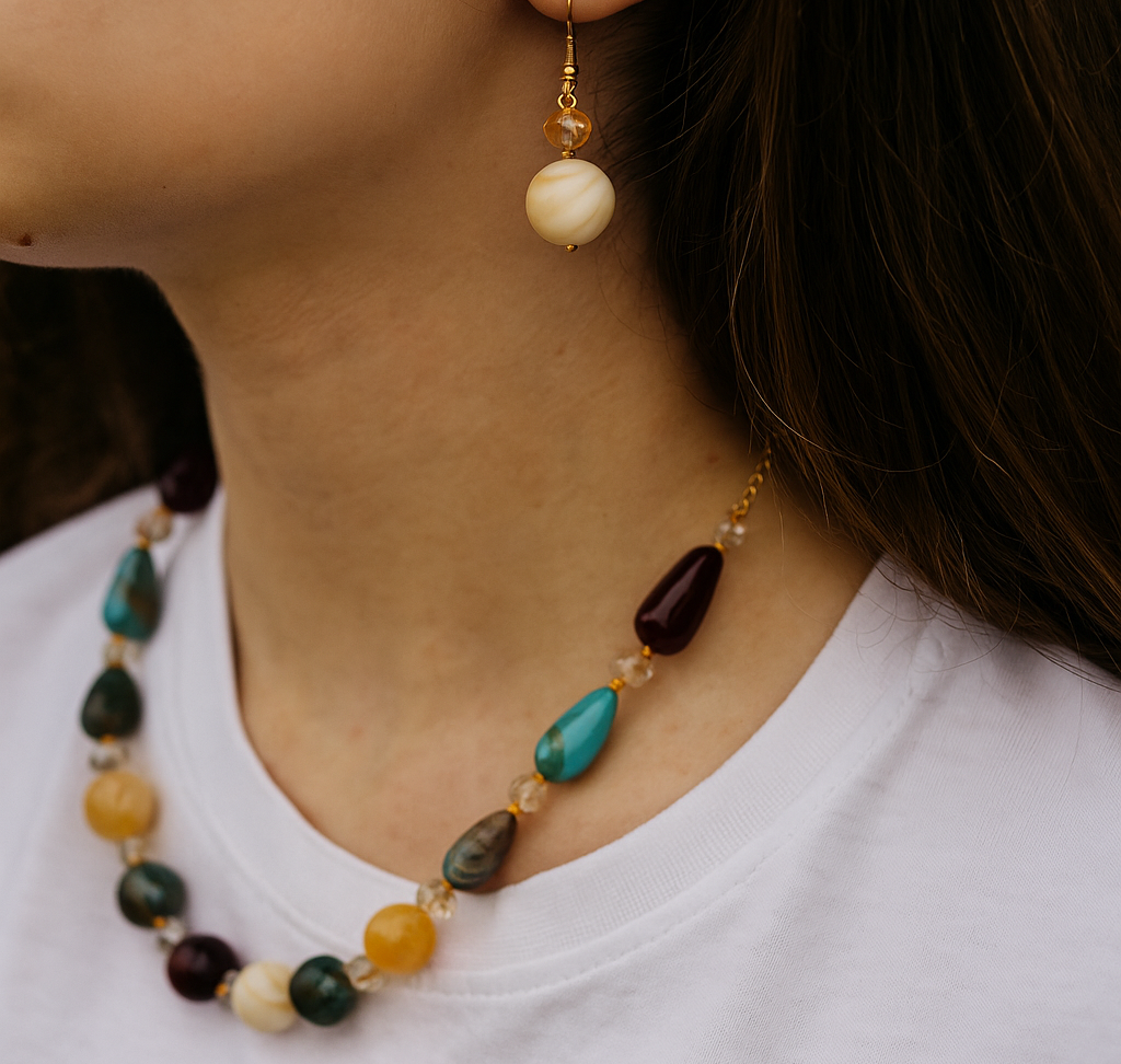 Add a touch of sophistication to your collection with the Nehyr Elegant Multicolor Gemstone Bead Necklace & Earrings Set.