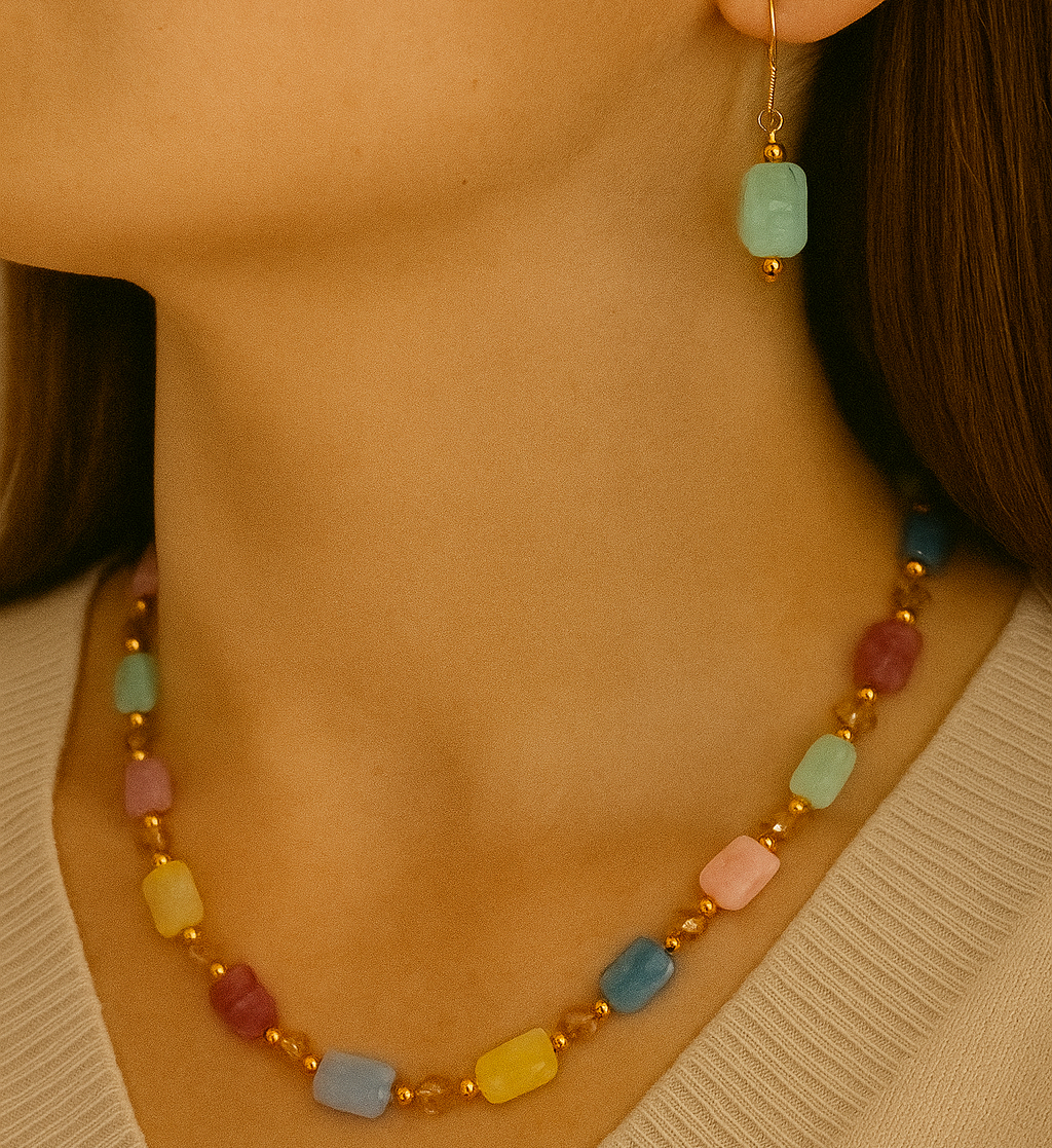 Nehyr Pastel Rectangular Bead Necklace & Earrings SetNehyr Pastel Rectangular Bead Necklace & Earrings Set
